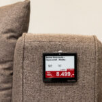 Digital price tags in multiple sizes are integrated directly into the display and always show up‑to‑date data: product descriptions, dimensions, price, promotions, and savings – often clearly indicated in percentages. The same clarity as online, just in physical form.