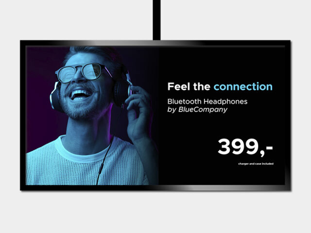 Breece ePoster är en storskärmslösning som stöder 4K-videokvalitet, högupplösta bilder, logotyper, bildspel, multiprodukter, animerade ikoner etc. I kombination med video gör ePoster att du kan öka försäljningen genom att lyfta fram produkter och priser på TV i butiken.
