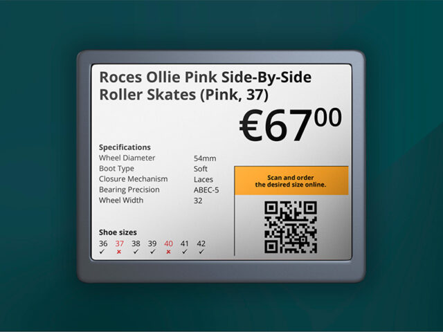 Med elektroniska hyllkantsetiketter (ESL) kan butikerna tydligt visa storlekar, lagerantal och förväntad leverans - direkt på produkten. Det gör kunderna trygga, ökar personalens effektivitet och förbättrar den totala shoppingupplevelsen.